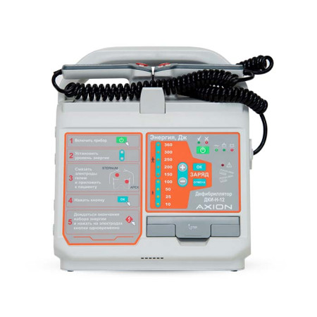 Дефибриллятор Аксион ДКИ-Н-12 воздействует на сердце человека одиночным бифазным усечённым экспоненциальным импульсом посредством пары электродов трансторакально (через грудную клетку). Прибор подходит для использования в медицинских учреждениях, а также для оснащения машин скорой и неотложной медицинской помощи. Дефибриллятор предназначен для применения у взрослых и детей — независимо от возраста и веса пациента.