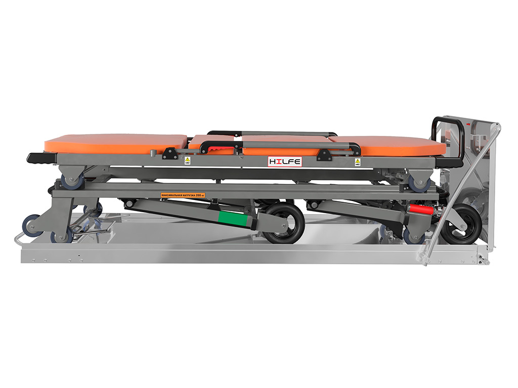 - комплект состоит из тележки-каталки, съемных носилок, приемного устройства, матраца для размещения пациента, штатива