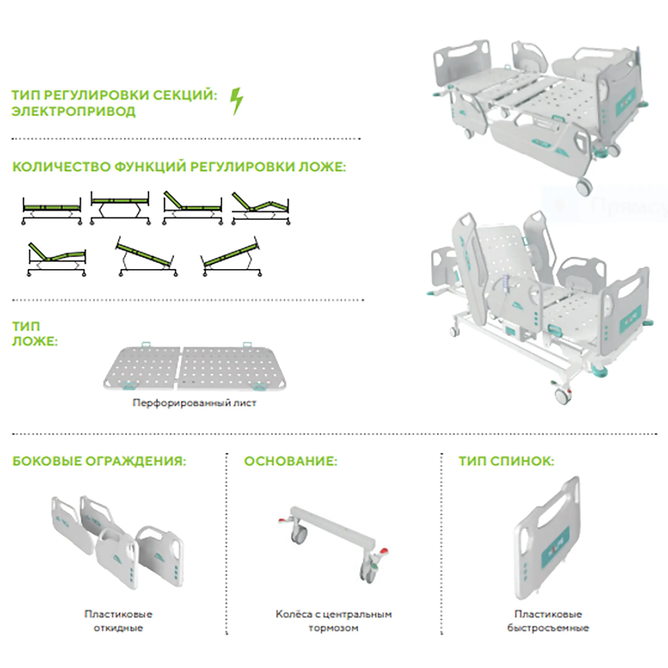 Функциональная электрическая медицинская кровать может использоваться, как в палатных отделениях, так и в отделениях реанимации и интенсивной терапии, а также в домашних условиях