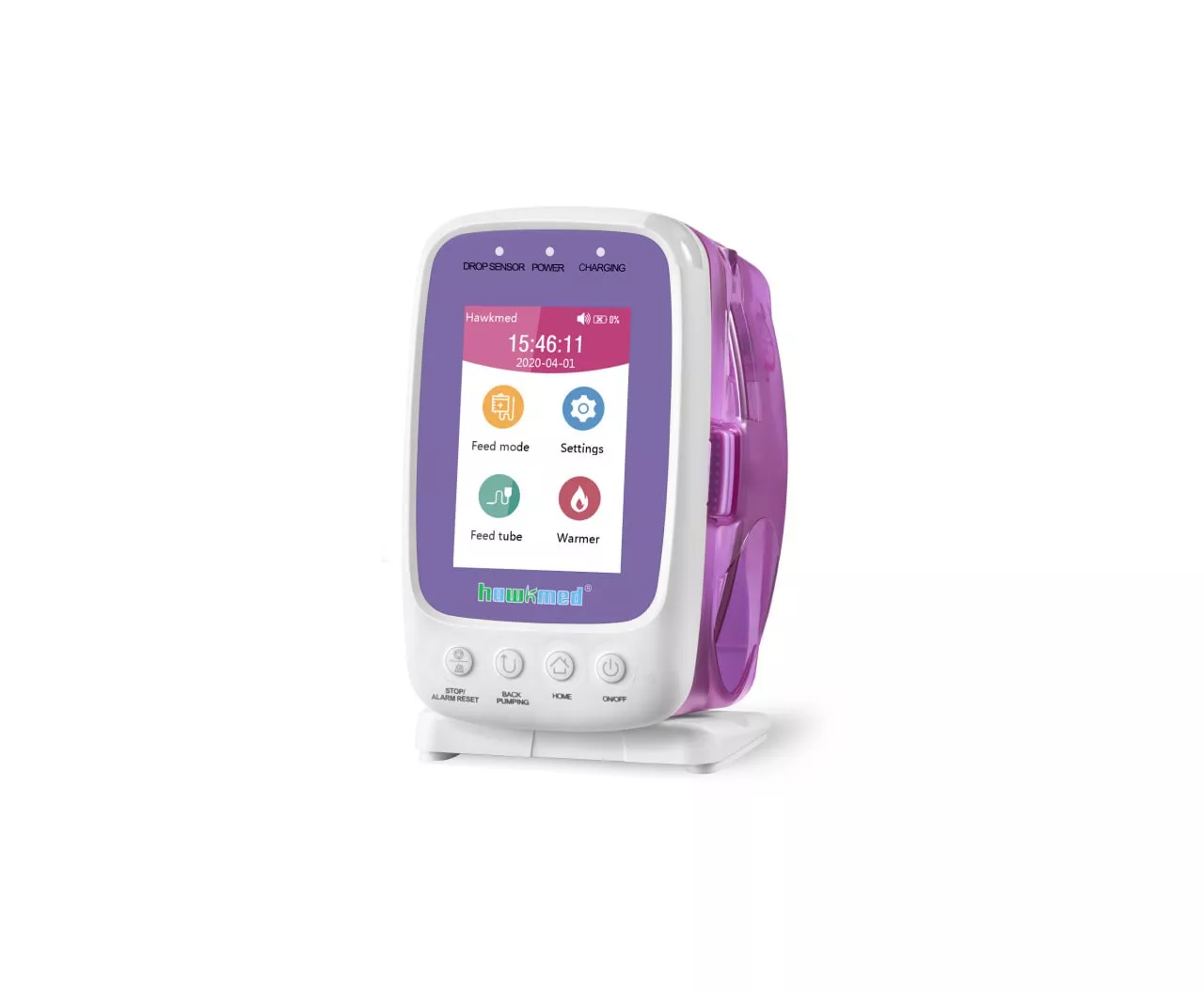 Скорость подачи питания устанавливается в диапазоне от 1 до 1200 мл/ч. Насос совместим с одноразовым набором для подачи питания, куда включена силиконовая трубка с многофункциональным наконечником, а также Enfit-тройник для добавления лекарств или очистки трубки. Благодаря универсальным выходным адаптерам возможно подключение различных энтеральных пакетов и бутылок разного объема.