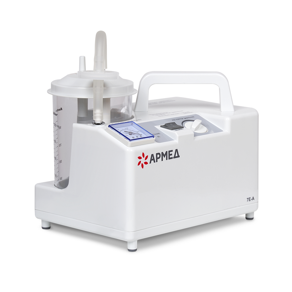 - Защита от перелива. Отсасыватель Армед 7Е-А оснащен антибактериальным фильтром и емкость-сборником жидкости, а специальный клапан защитит от перелива. Скорость работы регулируется при помощи удобной ручки.