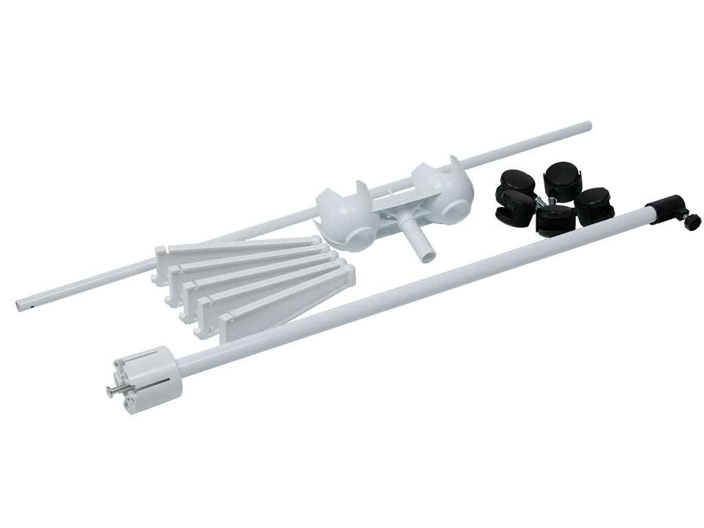 - Штатив представляет сборно-разборную конструкцию, состоящую из стойки, с флаконодержателями/ крючками, основания и колёс.